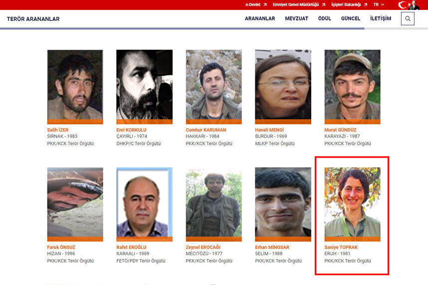 'Terörden Arananlar Listesinde' bir milyon TL’ye kadar ödülle Turuncu kategoride yer alan, Diljin Mariya Dersim kod adlı Saniye Toprak isimli terörist, 24 Ağustos'taki operasyonda öldürüldü.