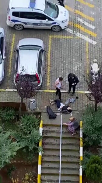 - 2 çocuk annesi bina önünde yere düşerken kadının yardımına site sakinleri ile yakınları geldi. Kanlar içinde yerde yatan kadını gören yakınları sinir krizi geçirdi.
