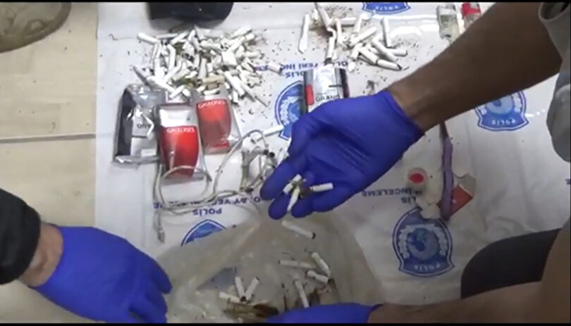 Polisin yaptığı aramada Suriye uyruklu 2 kişinin üzerinde bulunan sigara paketlerindeki sigaraların içine gizlenmiş halde bomba ateşlemekte kullanılan, el yapımı 11 elektrikli kapsül ele geçirildi. 2 şüphelinin giydikleri eşofman altının lastik kısmına saklanmış halde, canlı bomba örgüt üyelerinin kullandığı saniyeli ve infilaklı 2 patlayıcı fitili ele geçirildi.