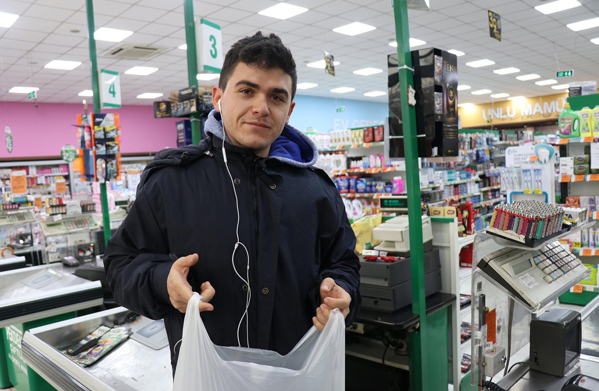 Bazı kişiler, markete bez torbalarını alarak giderken, bazıları ise 25 kuruş ücret karşılığında plastik poşet alarak alışverişini tamamladı. Markete gelen müşterilerin bazılarının ise aldıklarını poşete koymak yerine elinde taşıyarak ayrılması dikkati çekti.