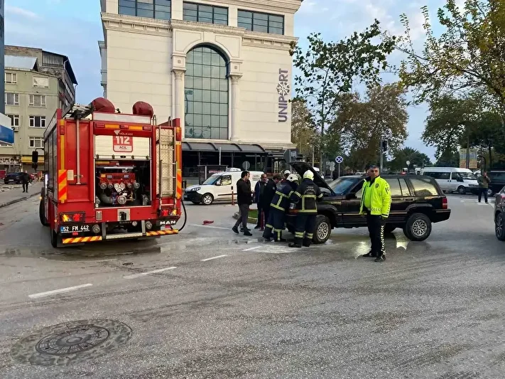 Ordu’nun Ünye ilçesinde seyir halinde olan bir otomobilin motor kısmından yangın çıktı.