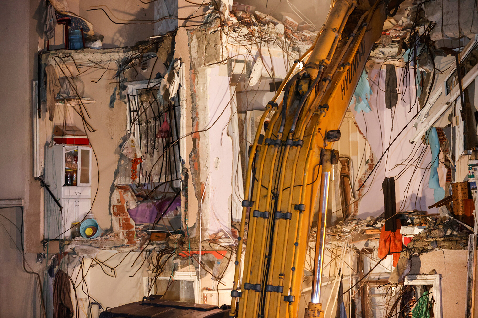 İş makinelerinin getirtildiği binada hazırlıklar yapılarak yıkım çalışması başlatıldı. Gece boyu devam eden çalışmaların ardından yıkım tamamlandı.