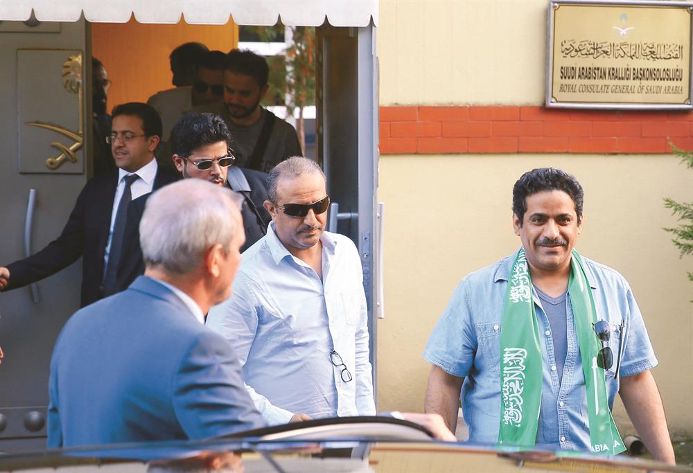 Suudi Arabistan Başkonsolosluğu önündeki bekleyiş sürerken dün binaya lüks araçlarla bazı yetkililer geldi. Daha önce Türkiye'ye gönderilen Suudlu polisler olduğu belirtilen kişiler, binada yaklaşık 2 saat kaldı. Dört lüks araçla gelen heyet, daha sonra binadan ayrıldı. Başkonsolosluk binasından çıkanlardan birisinin, boynuna Suudi Arabistan bayrağını atkı gibi astığı görüldü. Suudi Arabistan Başkonsolosluğu da, Kaşıkçı'nın konsoloslukta öldürüldüğüne dair suçlamaları reddetti.