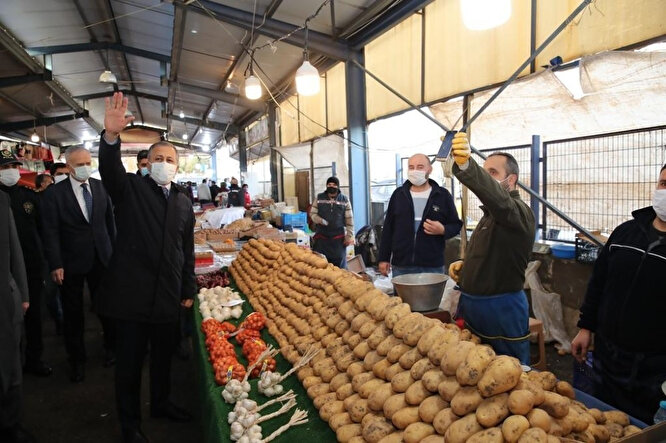 Vali Yerlikaya, pazar denetiminde vatandşlarla sohbet etti.