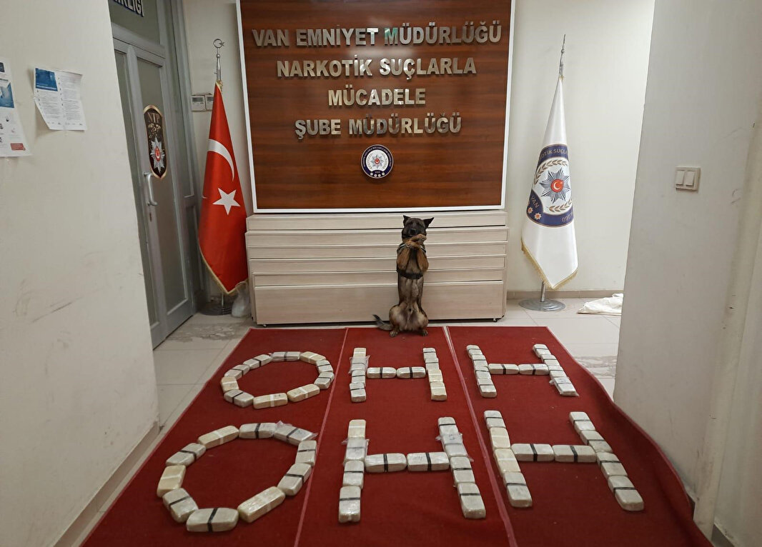 Van'ın İpekyolu ilçesinde otomobilde 30 kilo 750 gram eroin ele geçiren polis ekipleri, uyuşturucu paketleriyle "ohh ohh" yazarak İçişleri Bakanı Süleyman Soylu'nun TBMM Genel Kurulundaki konuşmasına destek verdi.