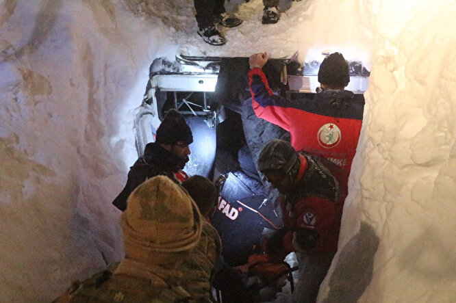 Van-Bahçesaray karayolunda 5 kişinin yaşamını yitirdiği, 7 kişinin ise yaralı kurtarıldığı çığda kayıp olduğu tahmin edilen 2 kişi için, sabahın ilk ışıklarıyla birlikte arama kurtarma çalışması yeniden başlatıldı.