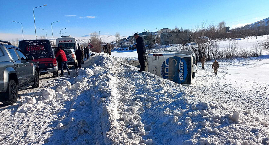 Van'da buzlanan yolda sürücüsünün kontrolünden çıkan yolcu otobüsü devrildi. Kazada, 2'si ağır, 9 kişi yaralandı.