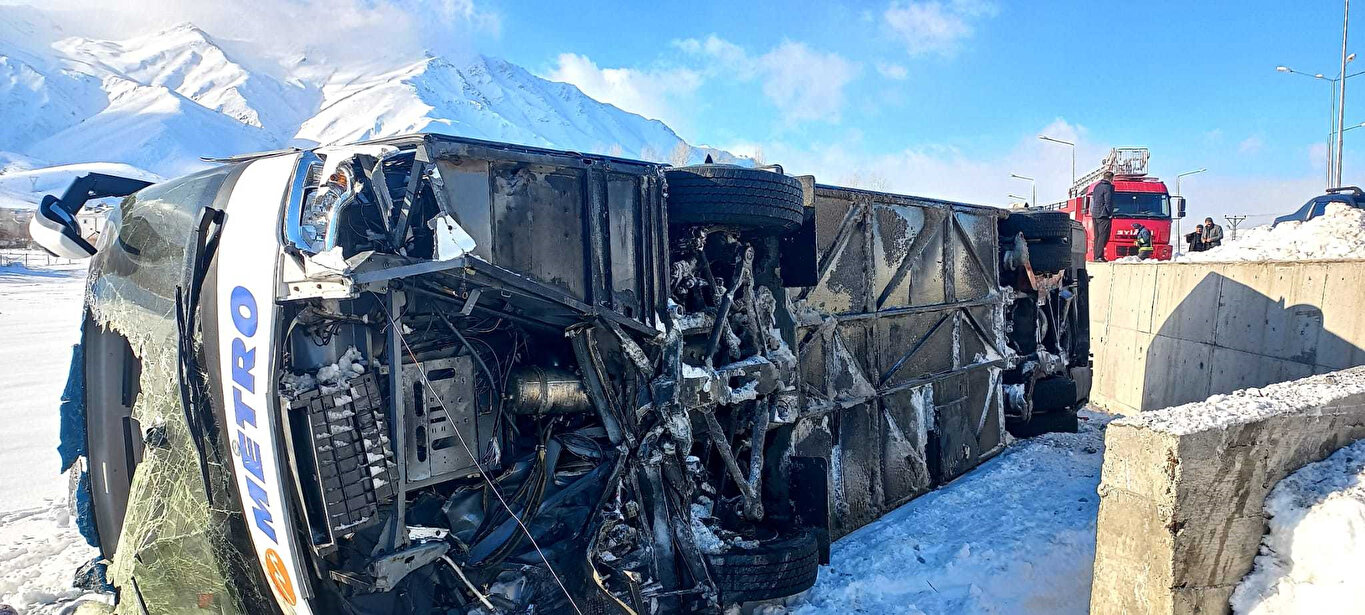 Mersin'den Van'a gelen 02 DE 810 plakalı yolcu otobüsü, yoldaki buzlanma nedeniyle sürücüsünün kontrolünden çıkıp devrildi. Kazada, 2'si ağır, 9 kişi yaralandı.