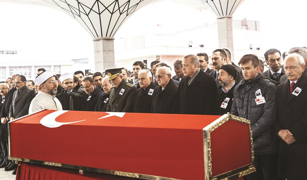 Afrin’de terör örgütü PKK’ya yönelik Zeytin Dalı Harekatı’nın ilk şehidi Astsubay Musa Özalkan, devletin zirvesinin katıldığı cenaze töreninin ardından toprağa verildi. Cumhurbaşkanı Erdoğan, “Şehidin Telafer’de anaokulu veya kreş yaptırılarak adının verilmesi vasiyetini Türk milleti olarak biz kendimiz hallederiz” dedi. MHP liderinin özel kalemi, şehidin vasiyetini Bahçeli’nin üstlendiğini açıkladı.