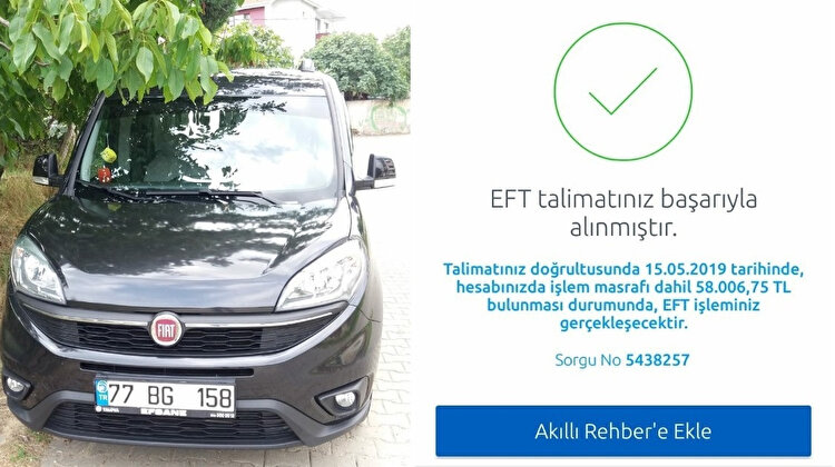 Şahıs EFT yapamadığını bir gün sonra Yalova’ya geleceğini ve parayı elden getireceğini belirtti. Ertesi gün şahsı arayan Karahasan telefona ulaşamadı. Savcılığa giderek suç duyurusunda bulunan Karahasan aracın İzmir’de bir galeriye satıldığını öğrendi.