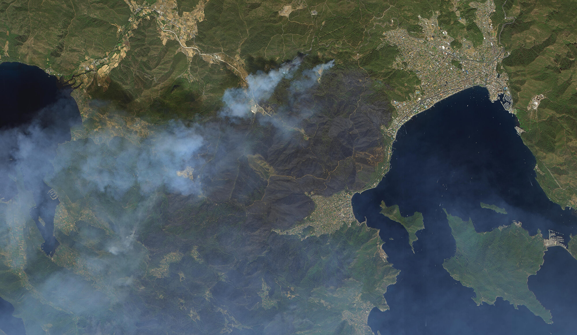 Türkiye'nin yüksek çözünürlüklü yerli keşif uydusu Göktürk-1 ve Göktürk-2, Manavgat ve Marmaris'teki orman yangınlarını görüntüledi.