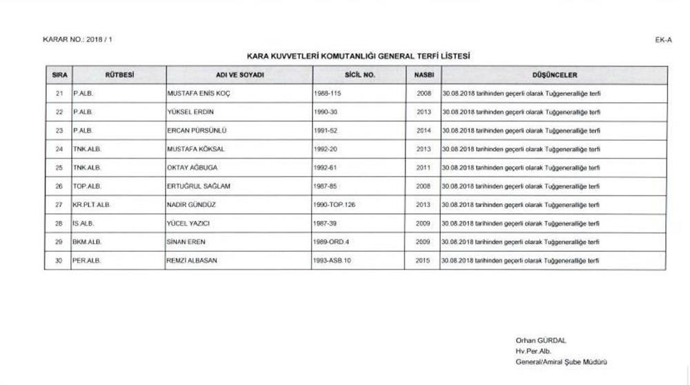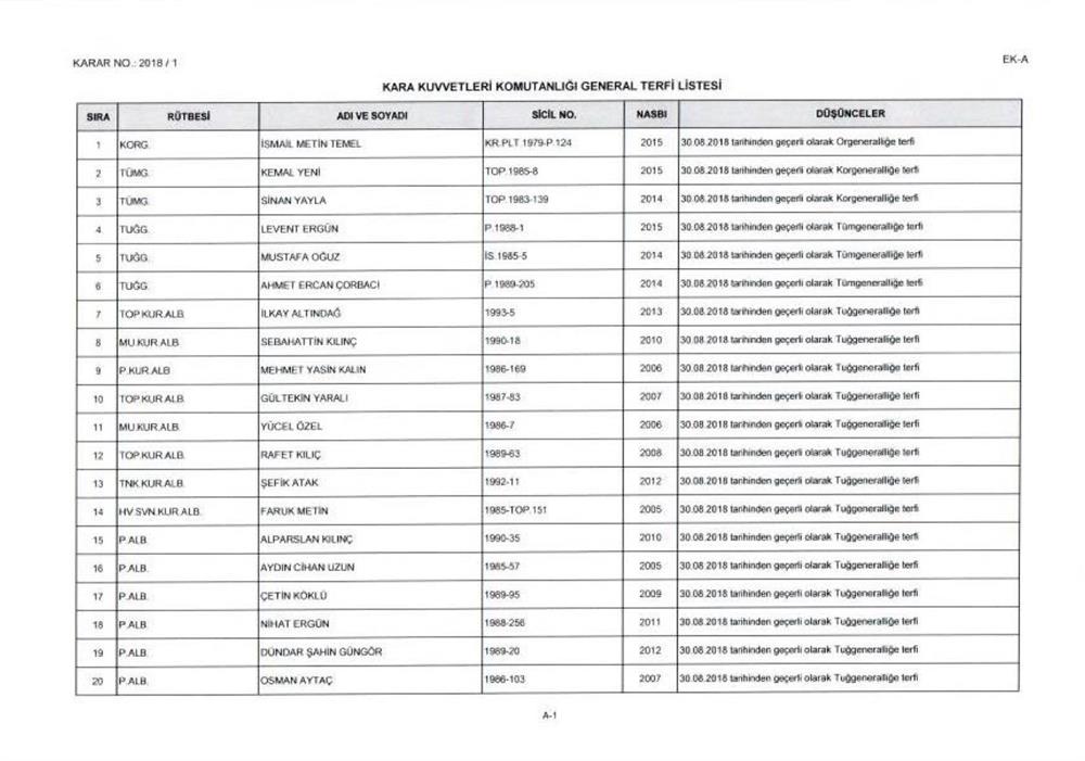 YAŞ kararıyla terfi alanların listesi