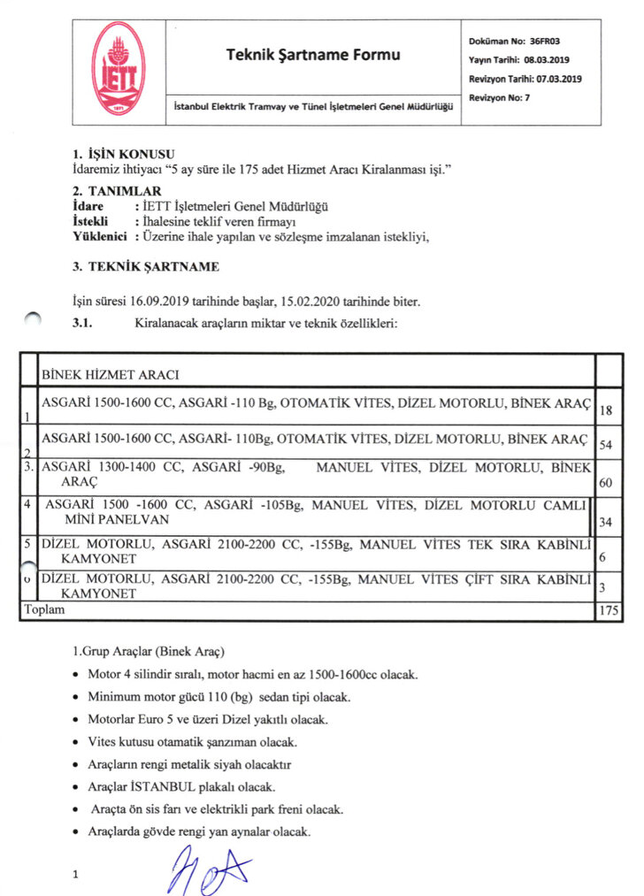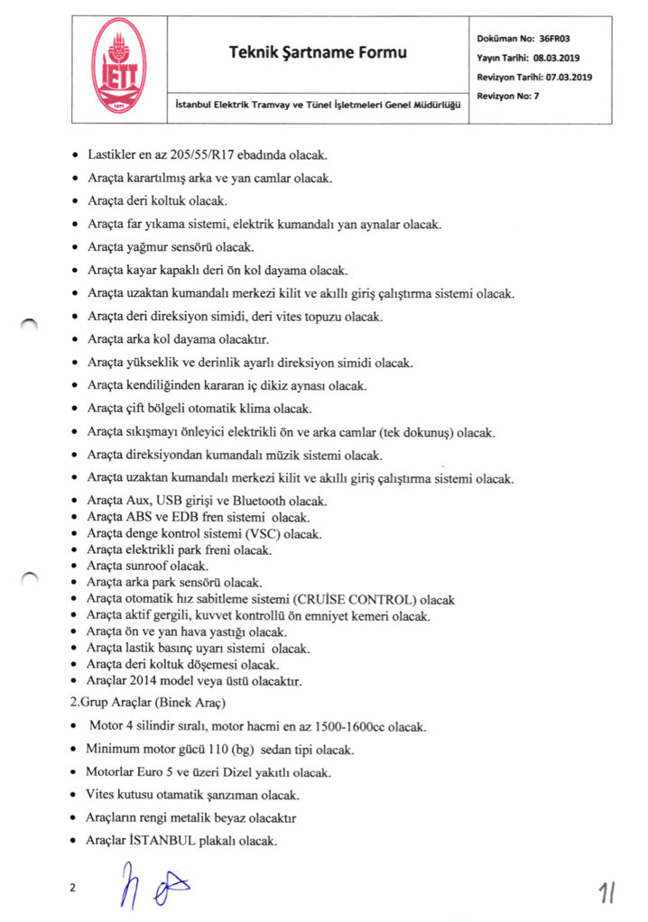 İstanbul Büyükşehir Belediyesi’nin iştirak şirketi üzerinden çıkılan 175 aracın 5 ay süreyle kiralanmasına yönelik ihalede, başvuru yapacak şirketlerden talep edilen özellikler dikkat çekiyor. Belediye tarafından ihale şartnamesine konulan araç özelliklerinden bazıları şu şekilde: