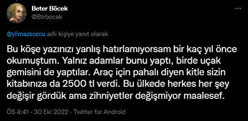 Özdil'in paylaşımı ve takipçilerinden gelen tepkiler: