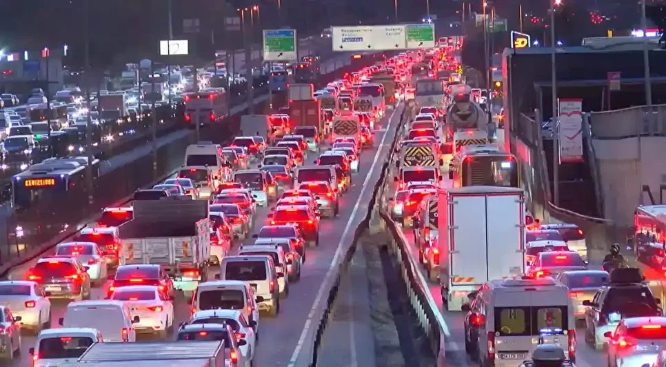 Kentteki ana arterlerde trafik durma noktasına geldi. D-100 Karayolu Yenibosna Mevkii'nde araçların güçlükle ilerlediği görüldü.