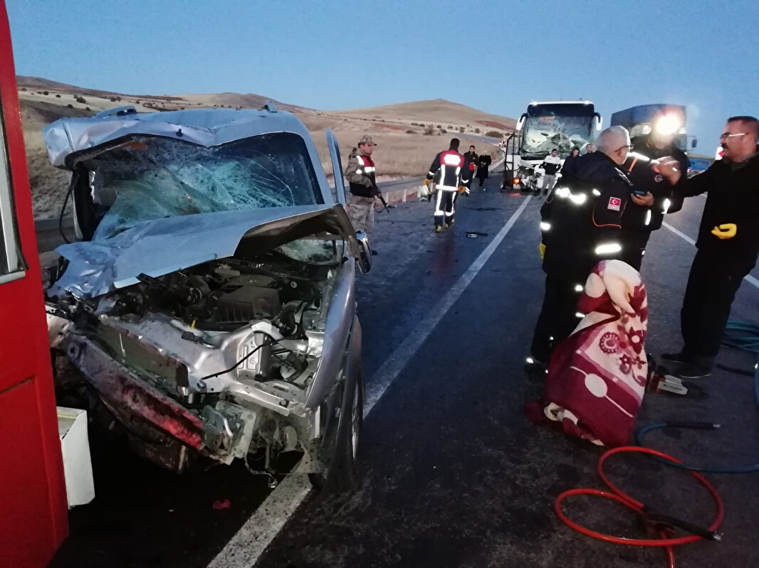 Sivas'ta Trabzon-Malatya seferini yapan bir yolcu otobüsünün hafif ticari araçla çarpışması sonucu 2 kişi öldü, 4 kişi de yaralandı.