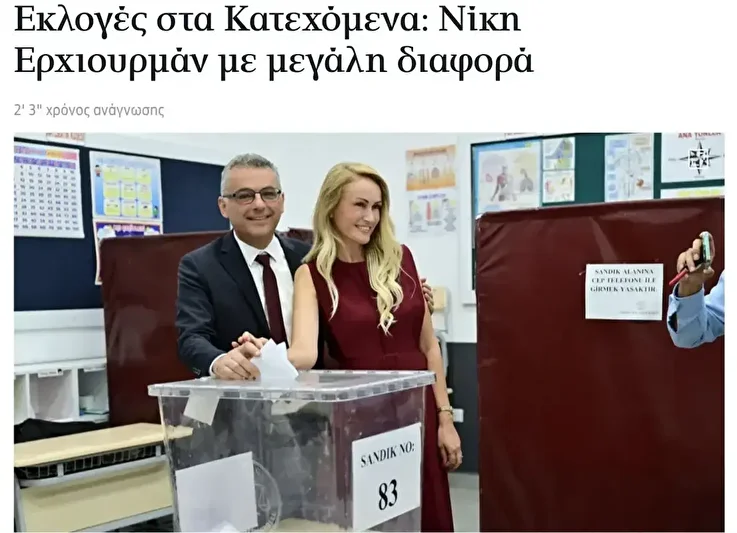 Yunanistan en büyük gazetelerinden birisi olan Kathimerini, manşetten verdiği haberde "İşgal altındaki topraklarda yapılan seçimi Kemalist aday büyük bir farkla kazandı" ifadelerine yer verildi.