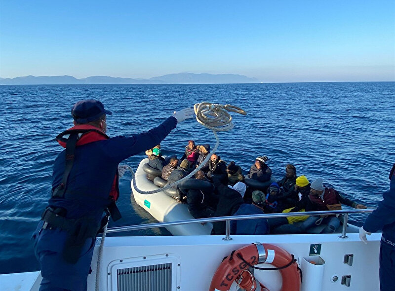 Kuşadası açıklarında farklı saatlerde lastik botlar içerisinde düzensiz göçmenler olduğu bilgisinin alınması üzerine görevlendirilen Sahil Güvenlik Komutanlığı ekipleri, Yunanistan unsurlarınca Türk kara sularına bırakılan ve kendi imkanlarıyla yüzerek Dilek geçidine çıkan 25 düzensiz göçmeni kurtardı.