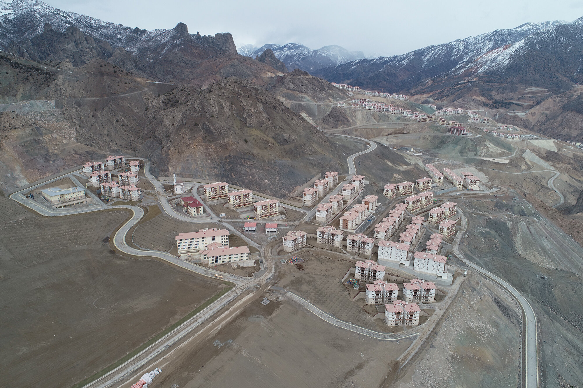 - "Yansıtıcılar bölgesi olarak adlandırılan ikinci bölgedeki üst yapı çalışmalarında birinci etapta 340 konut ve 16 dükkan, ikinci etapta 248 konut ve 32 dükkan, üçüncü etapta 336 konut, dördüncü etapta da 250 konut ve 4 dükkan yapımı tamamlanırken beşinci etaptaki 226 konut ve 40 dükkan inşaatında da yüzde 79'luk fiziki gerçekleşmeye ulaşıldı. Üçünü bölgedeki üst yapı çalışmaları birinci etap kapsamında 24 derslikli lise, sağlık ocağı, ilçe jandarma komutanlığı ve 334 konut inşa edildi. Bu bölgedeki ikinci etapta da semt cami, 224 konut, 8 dükkan yapımı tamamlandı."