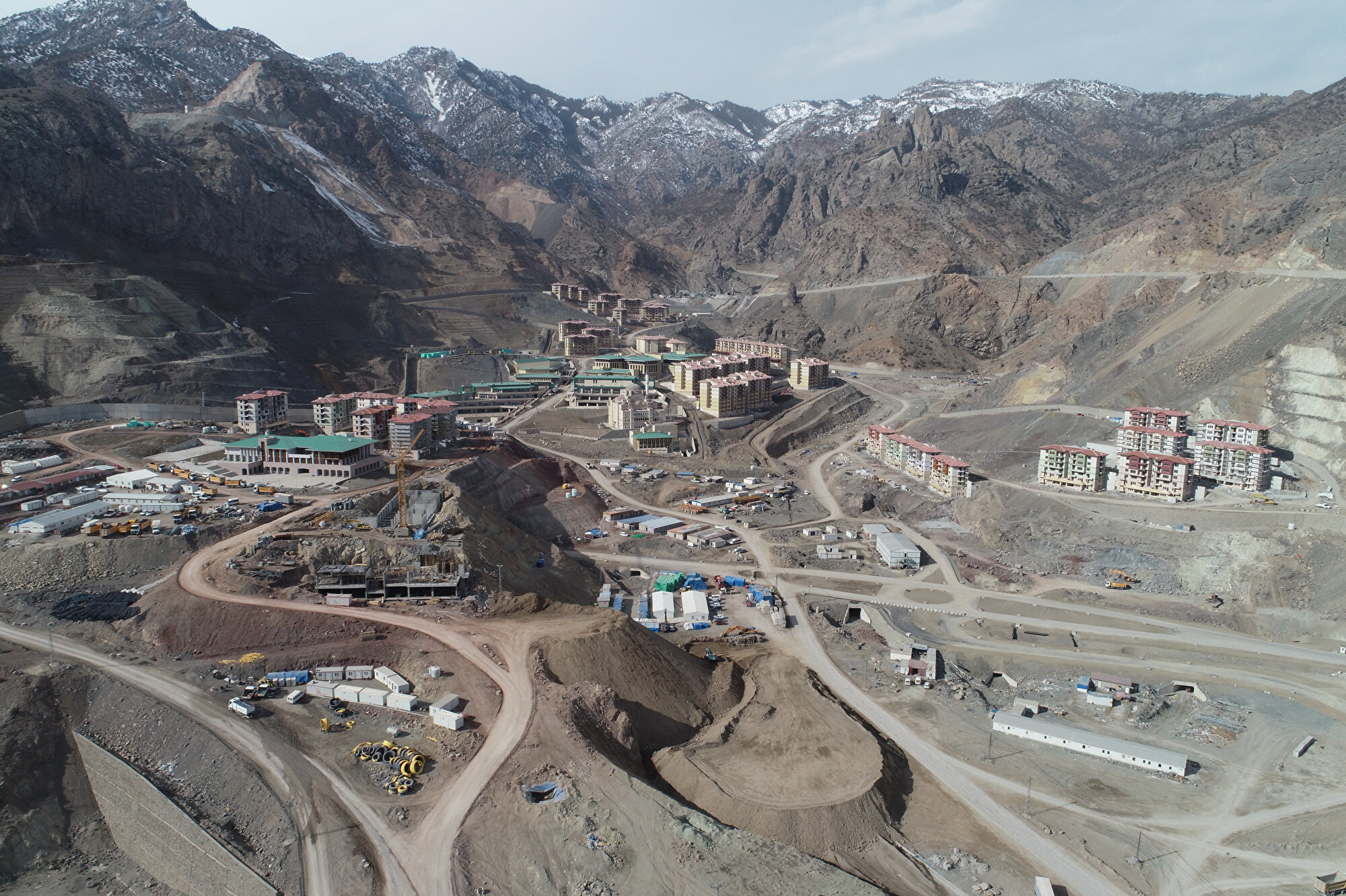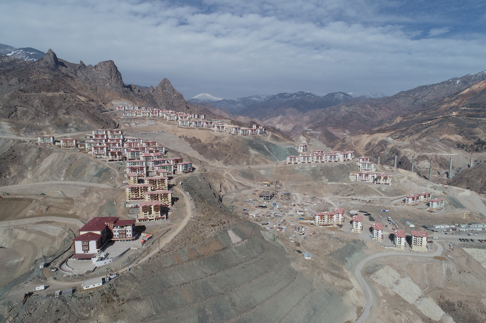 DSİ 26. Bölge Müdürlüğünden yapılan yazılı açıklamada, tamamlandığında Türkiye'nin en yüksek barajı olacak Yusufeli Barajı'nın göl sahasında kalacak ilçe merkezinin, yeni yerleşim yerinde inşa edildiği anımsatıldı.