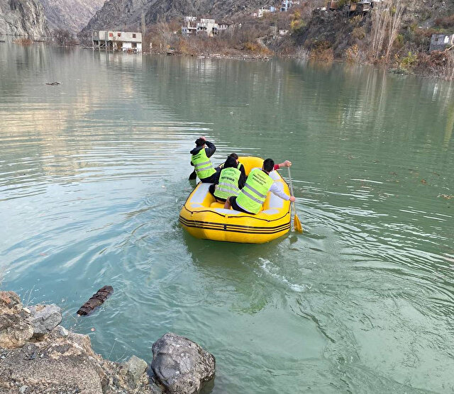 Artvin'in Yusufeli ilçesinde su altında kalacak köyde mahsur durumdaki köpek, botla ulaşım sağlayan ekiplerce kurtarıldı.