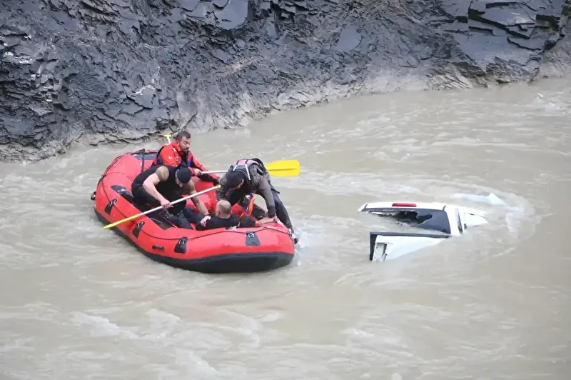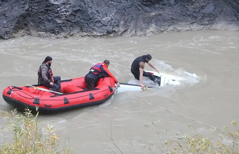 Bu sırada kontrolün kaybolduğu kamyonet, yaklaşık 200 metre yükseklikten Zap Suyu'na yuvarlandı.