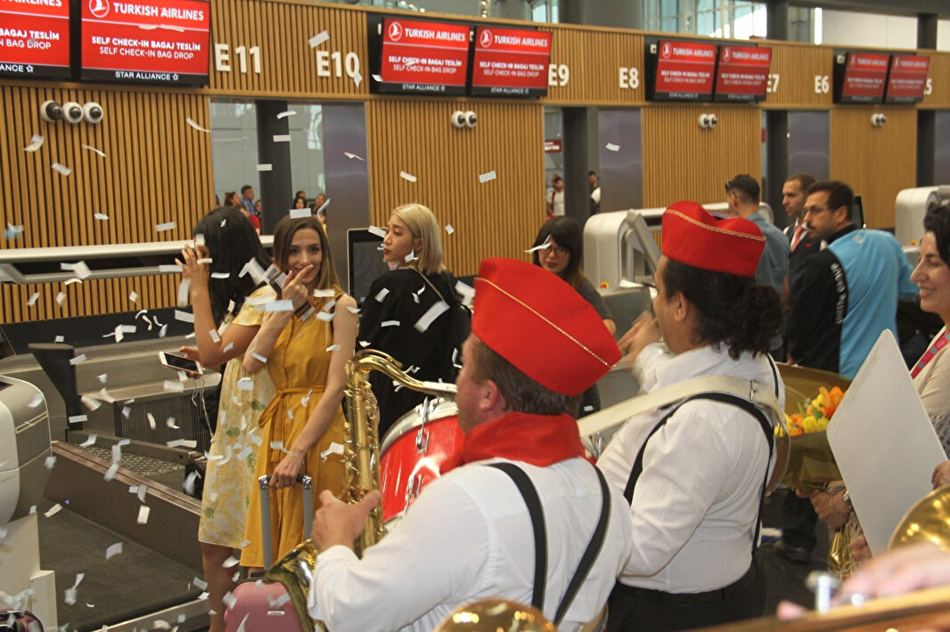 Bir anda konfetilerin patlamasıyla neye uğradığını şaşıran Esra Yeşilöz, yanına gelen bando ekiplerinin müzikleri eşliğinde unutamayacağı dakikalar yaşadı. Alkışlarıyla yapılan sürprize eşlik eden Yeşilöz'e İstanbul Havalimanı yöneticileri tarafından çiçek ve hediye takdim edildi.