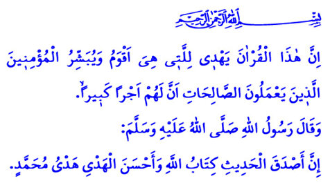 “Sözlerin en doğrusu, Allah’ın Kitabı; hâl ve tavrın en güzeli ise Muhammed’in hâl ve tavrıdır.”