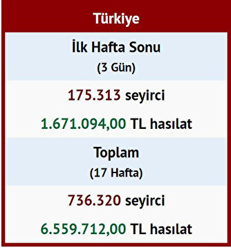 Box Office'nin "Kolpaçino: Bomba" filminin hasılat ve seyirci sayısı değerleri: