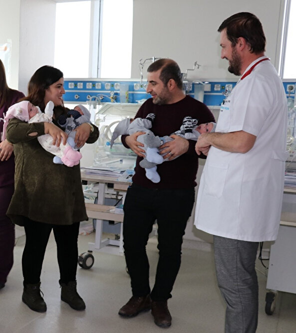 Hakkari’nin Yüksekova ilçesinde yaşayan Nurten ve Nurettin Bartın çiftinin 6 yıllık evlat hasreti, 31 haftalık olarak dünyaya gözlerini açan dördüz bebeklerle sona erdi. Burada iki aylık bir tedavinin ardından sağlıklarına kavuşan Ümeyir, Talha, Zanyar ve Eflin isimli bebekler, hastaneden taburcu oldu. Prof. Dr. Ercan Kırımi, dördüz bebeklerin çok az rastlanan bir durum olduğunu ifade ederek, “Dördüz doğan bebeklerin özellikle bu kadar erken doğmuş durumlarda yaşama şansları da çok yüksek olmuyor. Bebek Bartınlar 31 haftalık olarak doğdular. 9 hafta erken doğmalarına ve dördüz olmalarına rağmen gayet başarılı biçimde yaşadılar." dedi.