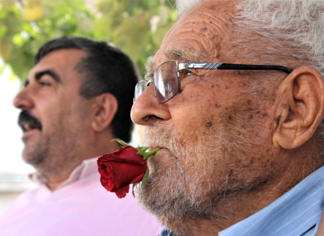 "Beni tanımayanlar ağzında niçin gül taşıdığımı merak edip soruyorlar. 27 yaşımda içtiğim sigarının bana zarar verdiğini düşünerek sigarayı bıraktım. Tiryaki olduğum için çok zor geldi. Sigarayı bırakmak için çare aramaya başladım. Sigarayı unuturum diye ağzıma gül koymaya başladım. 60 yıldır ağzımdan gülü hiç ayırmıyorum. Yazın gülleri bahçemden temin ediyorum. Kışın ise gül almak için her ay Yalova'ya gidiyorum. Bir gül bir hafta ağzımda duruyor. Her hafta ağzıma yeni bir gül alıyorum. Köyden çıkıp bir yere gittiğimde beni tanımayanlar tuhaf tuhaf bakıp niçin ağzımda gül taşıdığımı soruyorlar. Ben de onlara sebebini anlatıyorum. Ben bu gülü ölünce bırakırım."