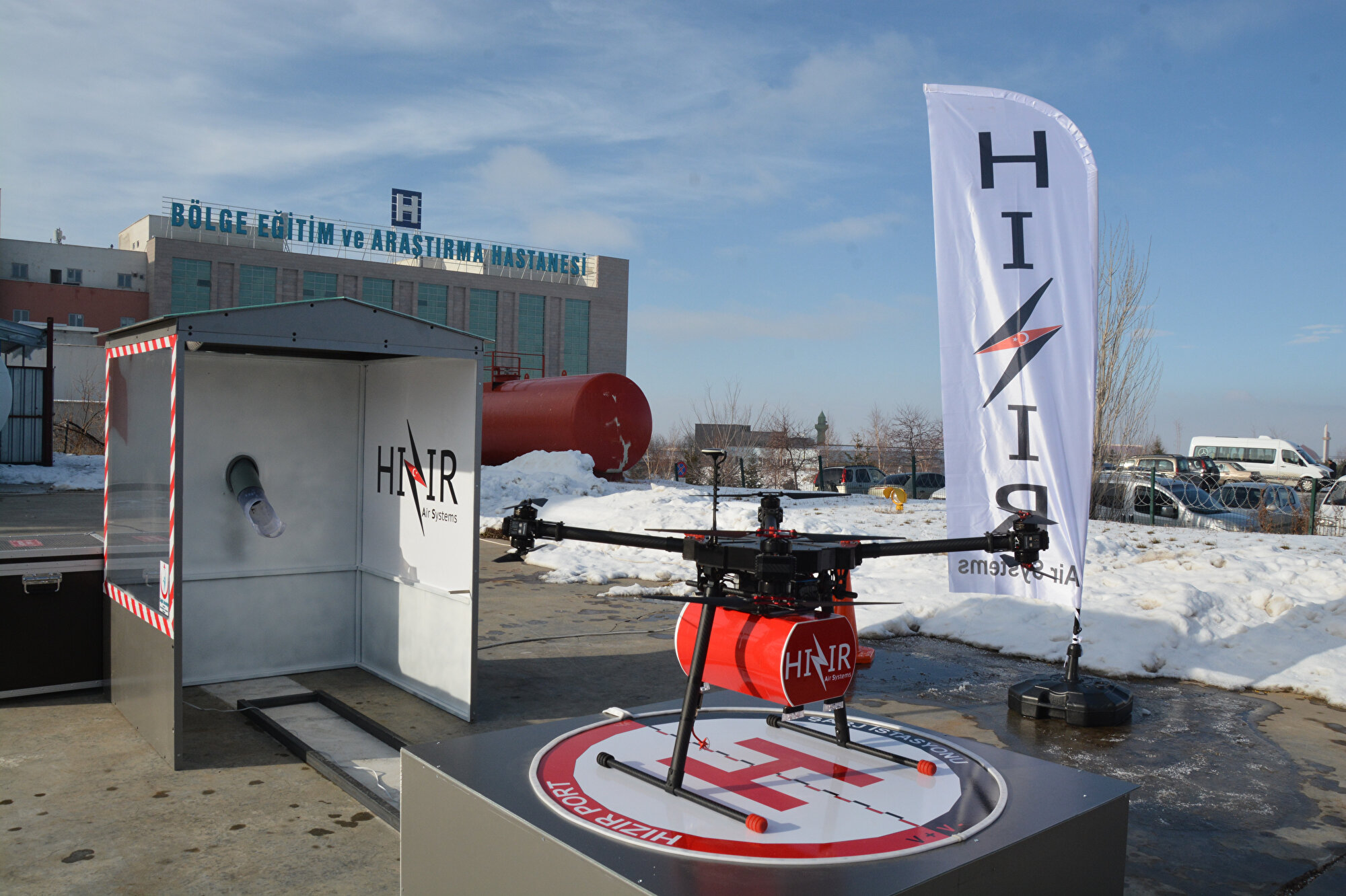 BEAH'a ait helikopter ambulans pistinde 'Hızır' adını verdikleri kan taşıma drone tanıtan hematoloji uzmanı Dr. Can Özlü, "Erzurum BEAH, kan ve kan ürünlerinin ana merkezi. Buraya bağlı 4-5 hastane bulunuyor. Göreve başladığım zaman ihtiyaç olan hastaneye kan gönderdiğimiz zaman bazı sorunlar olduğunu gördüm. Kan arabayla belirli zamanlarda gidiyordu. Acil göndermek gerektiğinde hasta yakınına veremiyoruz, rink yok sıkıntı olabiliyordu. Bu boşluğu doldurmak için KBB Uzmanı Dr. Sami Engin Muz ve İHA operatörü Sefa Yangal ile bu projeyi geliştirdik" dedi.