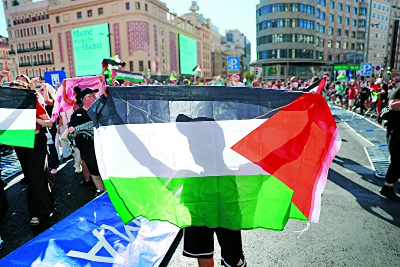 Alalpardo ve Madrid arasındaki yarışın son etabından Filistin yanlısı göstericiler sokağı ele geçiriyor. Filistin bayrağını gösteren kişinin yüzünü göremiyoruz. Ancak yansıyan gölge için insanlığı temsil ediyor diyebiliriz. Kimlik meçhul, duygu tanıdık.