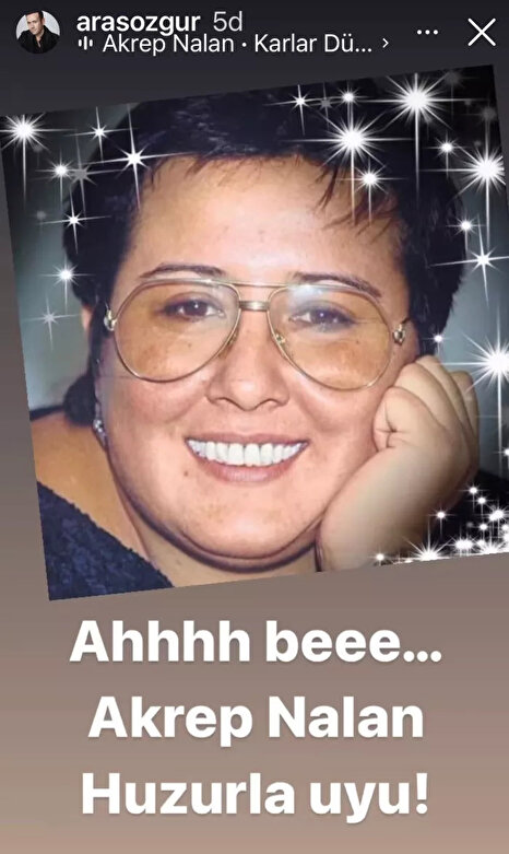 Hayat Bilgisi dizisinde canlandırdığı Fidan Hoca karakteri ile akıllara kazınan Akrep Nalan'ın vefat haberini Özgür Aras, sosyal medya hesabından yaptığı paylaşımla duyurdu.