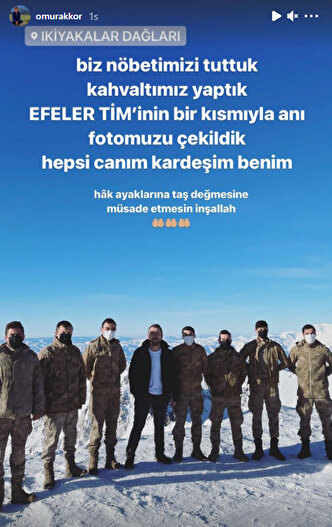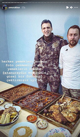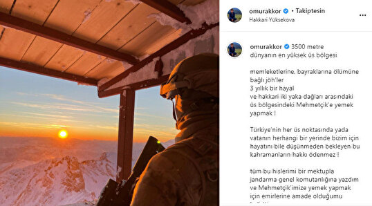 Türk ve Osmanlı mutfak kültürüne yönelik çalışmalarıyla tanınan ödüllü şef Ömür Akkor, Hakkari İkiyaka Dağları'nda 3 bin 500 rakımlı üs bölgesinde görev yapan Mehmetçik ile bir araya gelerek onlara yemek yaptı. Bu anın 3 yıl boyunca hayalini kurduğunu söyleyen Akkor, ziyaretini “Vatanın herhangi bir yerinde bizim için hayatını bile düşünmeden bekleyen bu kahramanların hakkı ödenmez” notuyla takipçileriyle paylaştı.