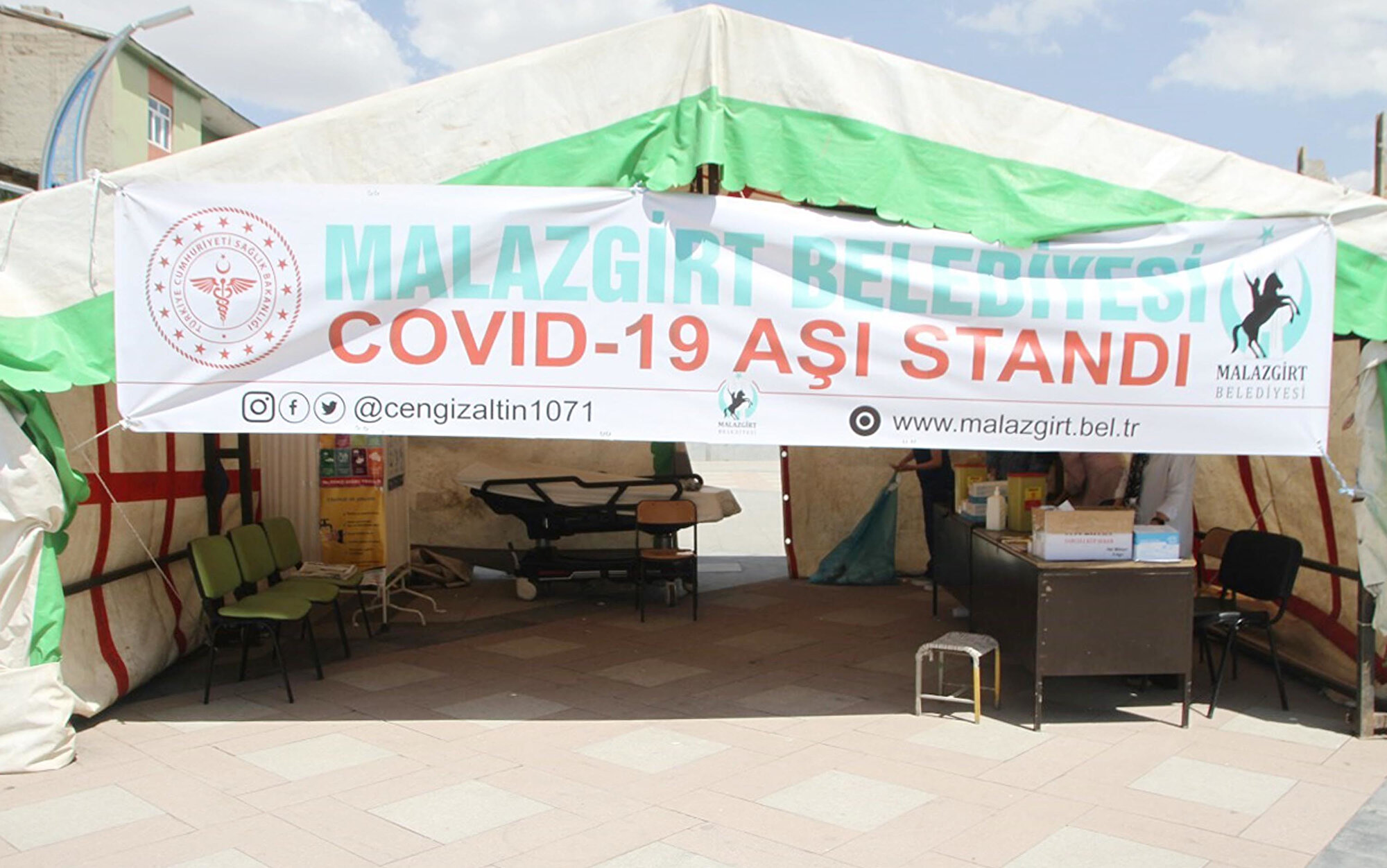 Kovid-19 aşılama oranı yüzde 43 olan Muş'un Malazgirt ilçesinde, 15 Temmuz Demokrasi Meydanı'na çadır kuruldu. Günlük aşılama hedeflerinin 150-200 olduğunu belirten İlçe Sağlık Müdürü Dr. Şeyma Görçin Karaketir, "Kurban Bayramı'na kadar ilçemizin yüzde 70'ini aşılamayı hedefliyoruz" dedi.