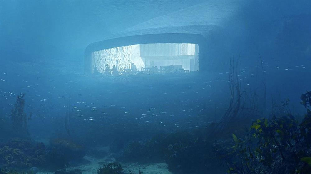 Eğik bir beton levhaya benzeyen Avrupa’nın ilk denizaltı restoranı tamamlanmak üzere. Norveç’te inşa edilen restoran 2019 yılında hizmete girmeye hazırlanıyor. Kuzey Denizi'nin yüzeyinin beş metre altında yer alan restoran yaklaşık 500 metrekarelik iç alanı ile 100 konuk ağırlayacak kapasiteye sahip. 11 metrelik geniş panoramik şekilde çevreleyen camıyla da deniz ortamının benzersiz sualtı manzarasını sunacak.