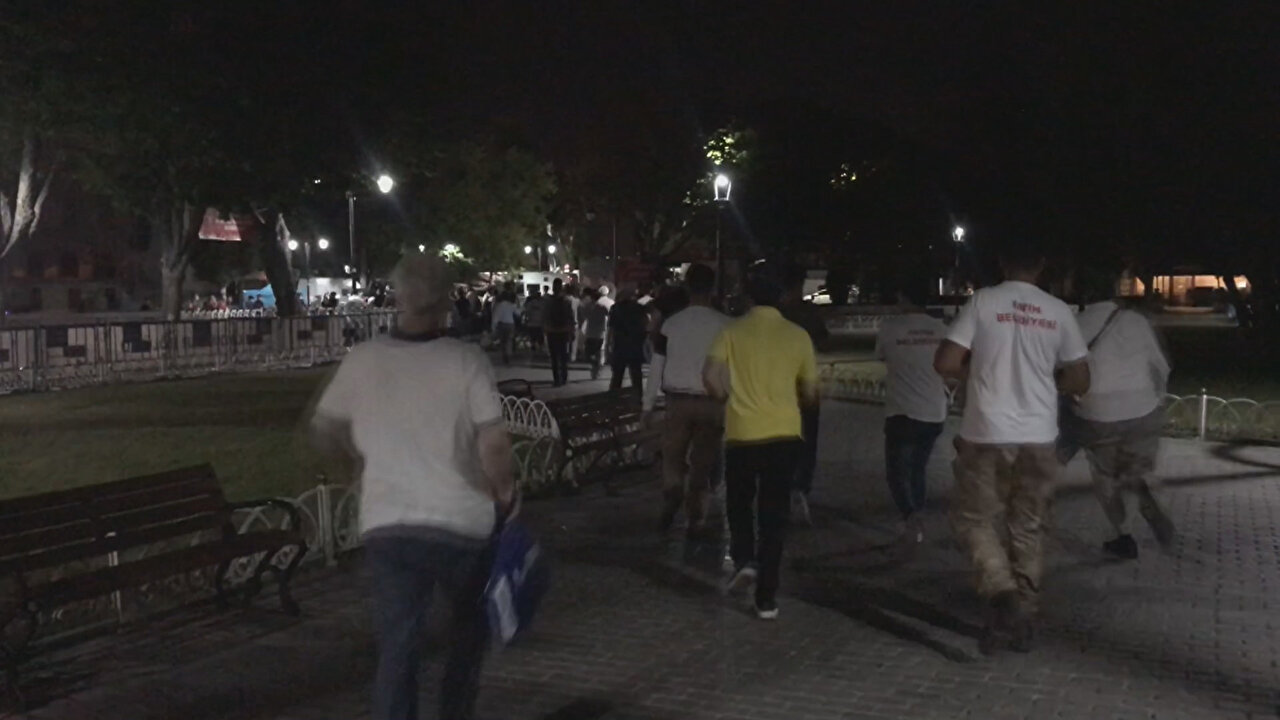 Ayasofya Camii'nde ilk defa kılınacak olan bayram namazı için vatandaşlar gece saatlerinde gelmeye başladı. Kontrol noktasını geçen vatandaşlar koşarak camiye gitmeye başladı.