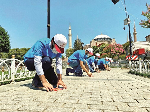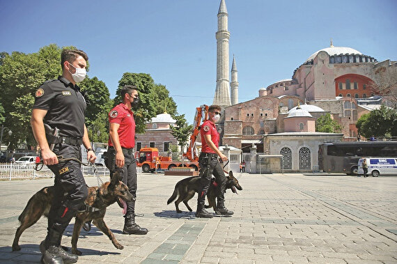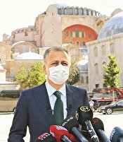 - İstanbul Valisi Ali Yerlikaya, Ayasofya Camii avlusunda açılışla ilgili çalışmalar hakkında bilgi verdi. Bu görkemli günü hemşehrilerin ve misafirlerin katkısıyla hep birlikte en güzel şekilde yaşayacaklarını dile getiren Yerlikaya, “Ayasofya’ya gelirken vatandaşlarımızın yanlarında 4 şey getirmelerini rica ediyoruz. Maske, seccade, sabır, anlayış” ifadesini kullandı. Cuma namazı için muhteşem bir ilgi olduğunu belirten Yerlikaya, şunları söyledi: “Buraya gelecek bütün misafirlerimizin en büyük arzularının Ayasofya Camii’nde namaz kılmak olduğunu biliyoruz. Ayasofya Camii’miz sabaha kadar açık olacak. Bunun için tüm imkanlarımızı seferber ediyoruz. Bütün kurumlarımızla birlikte görevimizin başında ve sahada olacağız inşallah.”