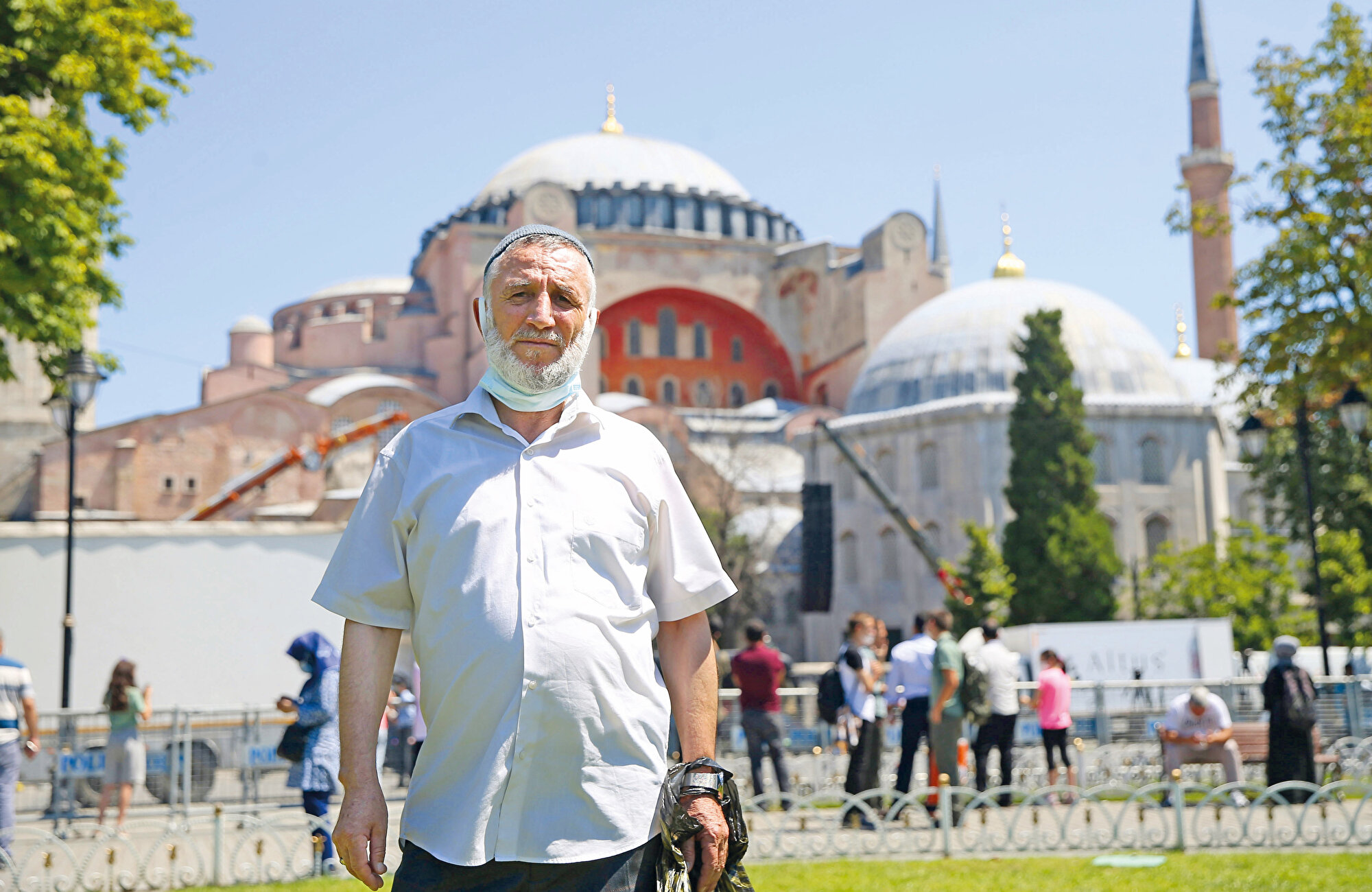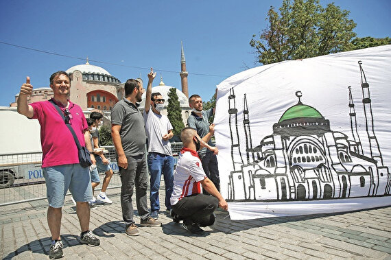 Ayasofya Camii’nde kılınacak cuma namazına katılmak isteyen vatandaşlar, Türkiye’nin dört bir yanından İstanbul’a geldi. Farklı illerden Ayasofya Camii’nde kılınacak ilk namaz için kente gelen bazı vatandaşlar, Ayasofya Meydanı’nda beklemeye başladı. Bursa’dan yürüyerek 7 günde İstanbul’a geldiğini söyleyen Ali Torlak, Eyüp Sultan’ın ve Fatih Sultan Mehmet Han’ın türbesini ziyaret ettiğini anlattı. Torlak, “Burada namaz kılmak, bu şerefe nail olmak için yürüdük. Elhamdülillah Rabb’imize bizi buraya ulaştırdı” dedi.