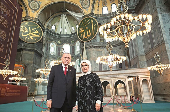 - Cumhurbaşkanı Erdoğan ile MHP lideri Bahçeli, açılıştan bir gün önce Ayasofya Camii’ne gelerek incelemelerde bulundu. Erdoğan’a eşi Emine Erdoğan da eşlik etti.