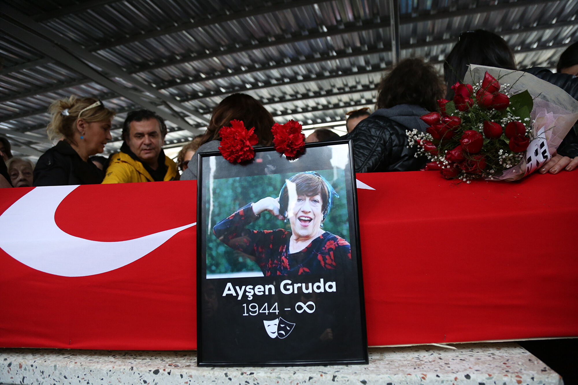 Yeşilçam'ın usta oyuncusu Ayşen Gruda, 23 Ocak'ta hayatını kaybetti. Uzun süredir pankreas kanseriyle mücadele eden Gruda'nın naaşı bugün öğle namazının ardından Zincirlikuyu Mezarlığına defnedildi. Usta sanatçının cenaze törenine kızı Elvan Gruda, eski eşi Yılmaz Gruda ve torunu Emre Gruda'nın yanı sıra sanat dünyasından Nevra Serezli, İlyas Salman, Müjdat Gezen, Volkan Severcan, Tuna Arman, Ali Sunal gibi oyuncular katıldı. Cenazede duygusal anlar yaşayan kızı Elvan Gruda, "Söyleyecek çok söz var ama takatim yok. Onu herkes seviyor, övüyor, kucaklıyor. Ben de aynı duyguları paylaşıyorum ama bir farkla; ben onun bebeğiyim" dedi.