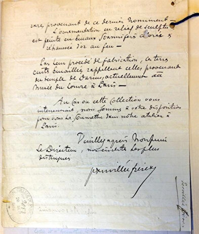 Mektubun arşiv belgelerinden çıkması ve tercüme edildikten sonra bu şüphelerin ortadan kalktığını kaydeden Güleç, Fransızca mektubun Leon Parville’nin oğlu tarafından müzeye yazıldığı anlaşıldı. Babasının Asya topraklarından getirdiği bazı çinileri, özel oryantalist parçaları müzeye satmak istediğine yönelik bir belge olduğunu gördük. Belgenin devamında 67 parça çininin müzeye satıldığını fark ettik. Mektup, üzerinde durulan ama ispatlanamayan bir konuyu ispatlama şansı verdi" dedi.