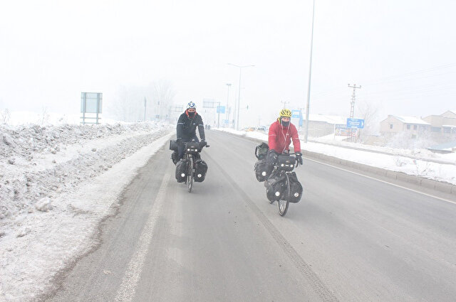 - "Kat kat elbise giymemize rağmen halen çok üşüyoruz. Havalar soğuk ancak soğuk havada da bisiklet turunun yapılabileceğini ve insanların kaynaşabileceğini göstermek istiyoruz. Güzergah olarak İran üzerinden Türkmenistan, Kazakistan ve Kırgızistan'a geçip turumuzu Çin'de tamamlayacağız."
