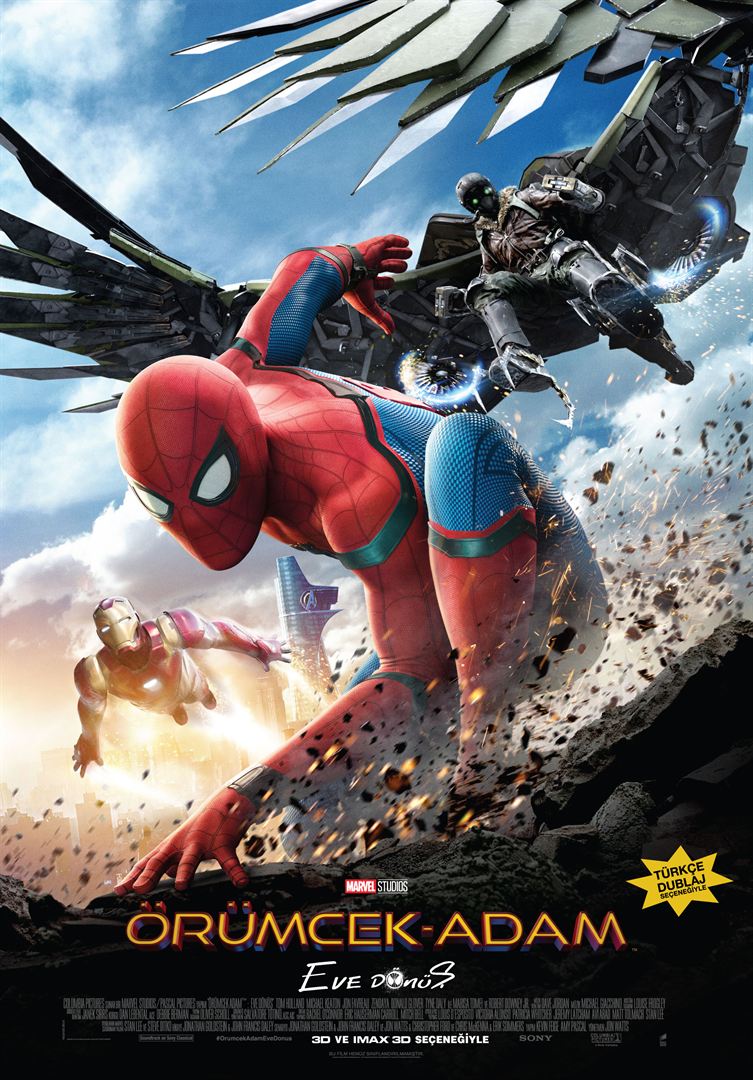 Jon Watts'ın yönetmenliğini yaptığı ve Tom Holland, Robert Downey Jr, Marisa Tomei, Michael Keaton, Logan Marshall-Green ile Kenneth Choi'nin başrollerinde yer aldığı "Örümcek-Adam: Eve Dönüş" izleyiciyle buluşacak.Spider-Man'in Marvel Sinematik Evreni'ndeki ilk solo filmi olacak yapım, dünyayı kurtarma ile öğrencilik arasında gidip gelen "Peter Parker" karakterinin, "Vulture"ı alt etme çabasını anlatıyor. "Captain America: Civil War"da sansasyonel bir başlangıç yapan genç Peter Parker, "Örümcek-Adam: Eve Dönüş"te yeni bulduğu kimliği ve ağ atma yeteneğiyle, süper kahraman olarak yaşamaya başlayacak.