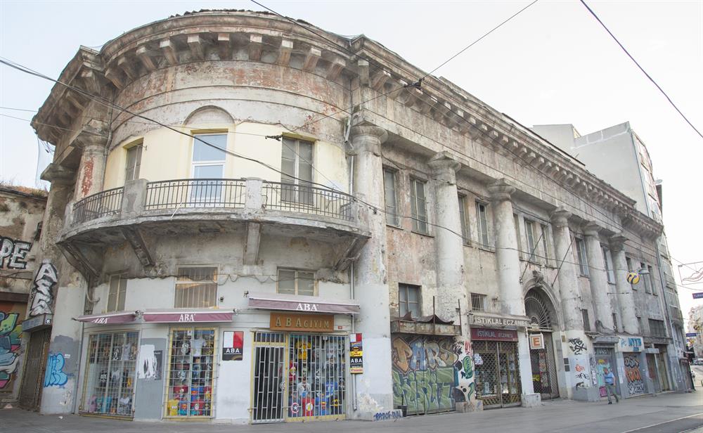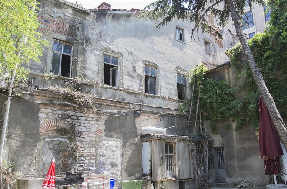 Bu bina 20 senedir virane halde duruyor. Döşeme ve tavanları çökmüş durumda, can ve mal emniyetini tehdit ediyor üstelik. Üst katları belki 30 senedir kullanılmıyor. İçinin fotoğraflarını görseniz kan ağlarsınız. Bina yıkılacak diye doğru dürüst fotoğraf çekemedik. Duvarlar patlamış, demirler açığa çıkmış, balkonlar çökmüş. Çok miktarda kedi var, çünkü Beyoğlu'nun bütün fareleri burda… Ağaçların iki tanesini muhafaza edip taşıyacağım. Siz sormadan ben söyleyeyim: Burada anıtsal nitelikte ağaç falan yok! İki tane ağacı muhafaza edip oldukları yerden biraz ileriye taşıyacağım, o da mecburiyetten.