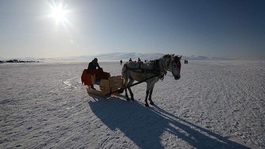 Doğu Anadolu'nun en büyük ikinci gölü olan ve kış aylarında yüzeyi tamamen buzla kaplanan Çıldır Gölü'ne gelen yerli ve yabancı turistler, buz üstünde atlı kızakla gezinti yapıyor. Ozan Karataş, "Kars'ta Doğu Ekspresi treni fenomen oldu, insanlar trende yer bulamıyor. Göl bize Allah'ın lütfu, herkesi buraya davet ediyorum" dedi.