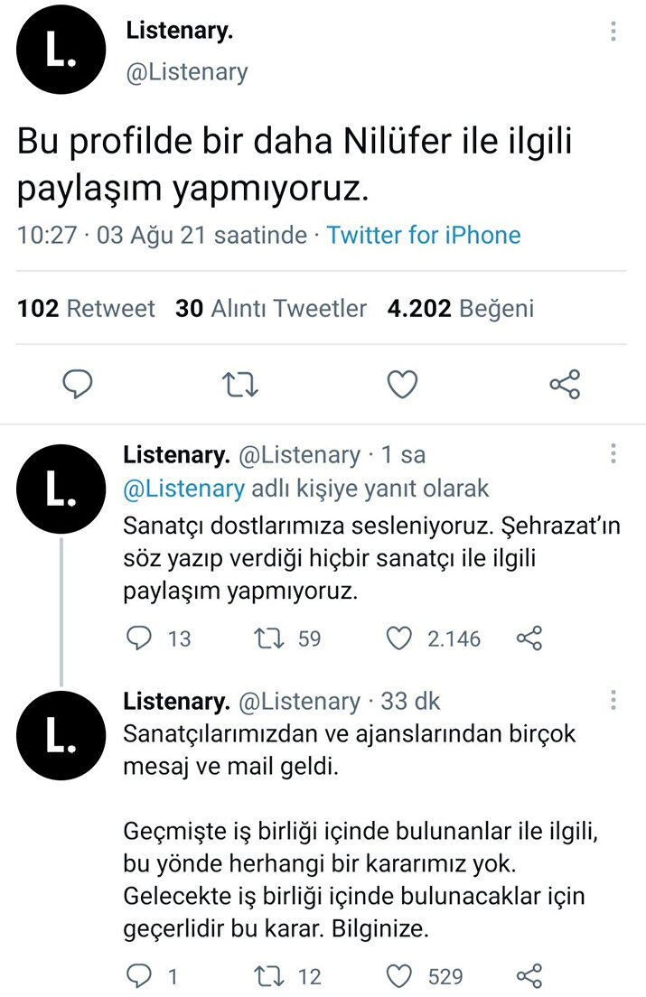 Nilüfer, Nilgün Belgün ve Şehrazat'ın kampanyaya destek vermemesi üzerine Twitter'da binlerce takipçisi bulunan Listenary ve 'nerede o eski şarkılar' isimli hesaplar şüpheli kampanyaya destek vermeyen sanatçıların eserlerini yayınlamayacaklarını duyurdu.
