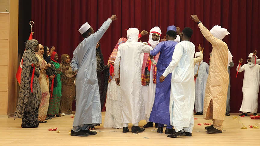 Programa yöresel kıyafetleriyle katılan öğrenciler, temsili Çad düğünü de sahneledi. Gelin ve damadın temsili olarak evlendirildiği düğünde eğlenceli anlar yaşandı.