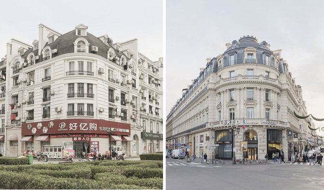 Prost, Paris’teki Eyfel Kulesi, Zafer Takı, Champ de Mars, Pantheon, Louvre Müzesi gibi ikonik yerlerin birebir aynısının 6 bin kilometre uzağa inşa edildiği Çin kentini fotoğraflayarak, iki şehri birbiriyle kıyasladı.